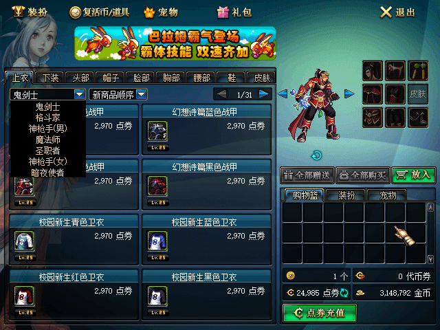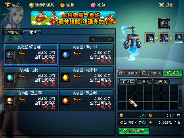 商城内容和细节介绍,包含DNF60版本的原版宠物。
